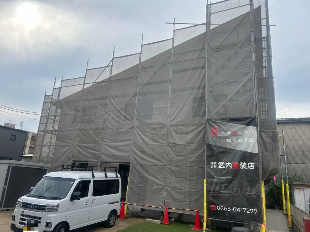 倉敷市(N様邸)外壁塗装工事、着工いたしました。
