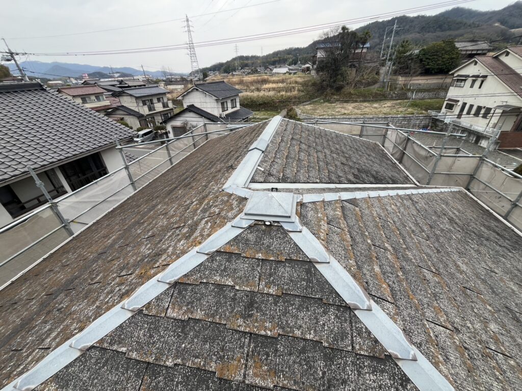 2000年前後に製造されたノンアスベスト初期型スレート屋根です。